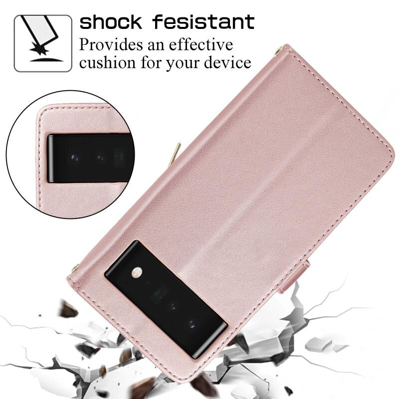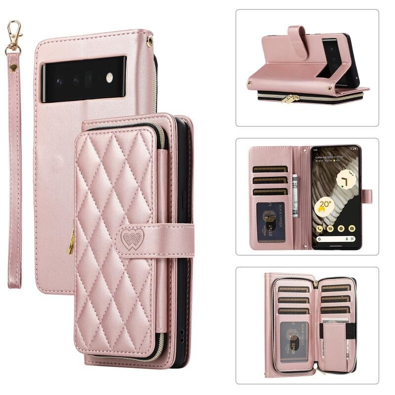 Για το Google Pixel 6 Pro Rhombic Πλήρης φερμουάρ πορτοφόλι δερμάτινη θήκη τηλεφώνου (ροζ χρυσό)