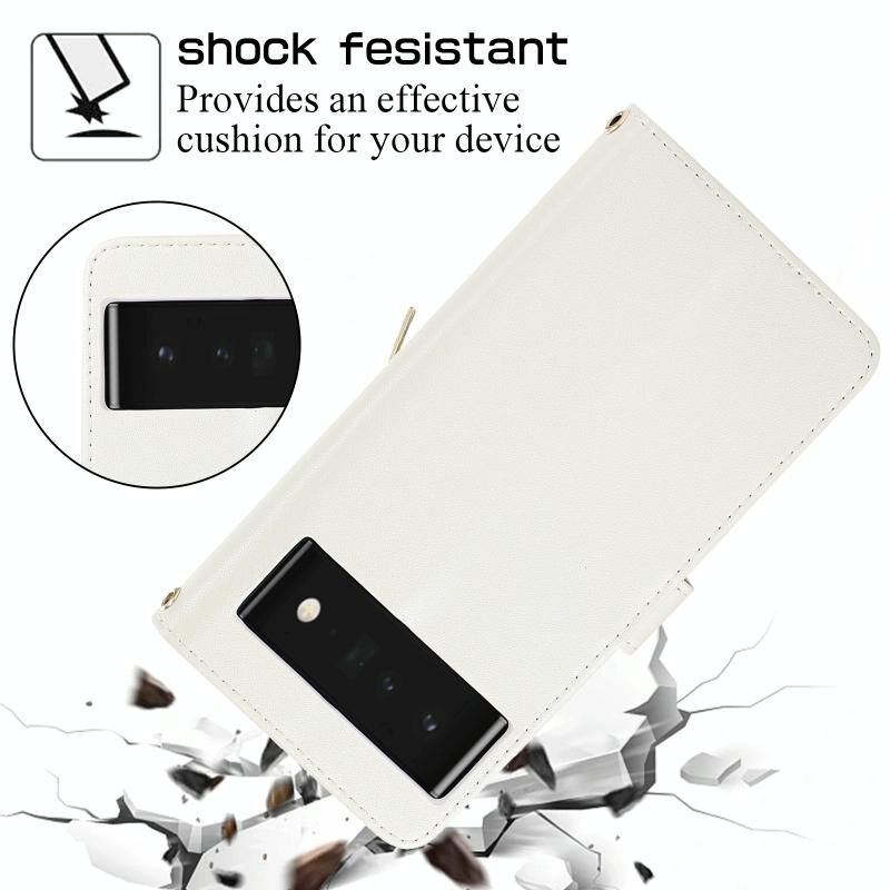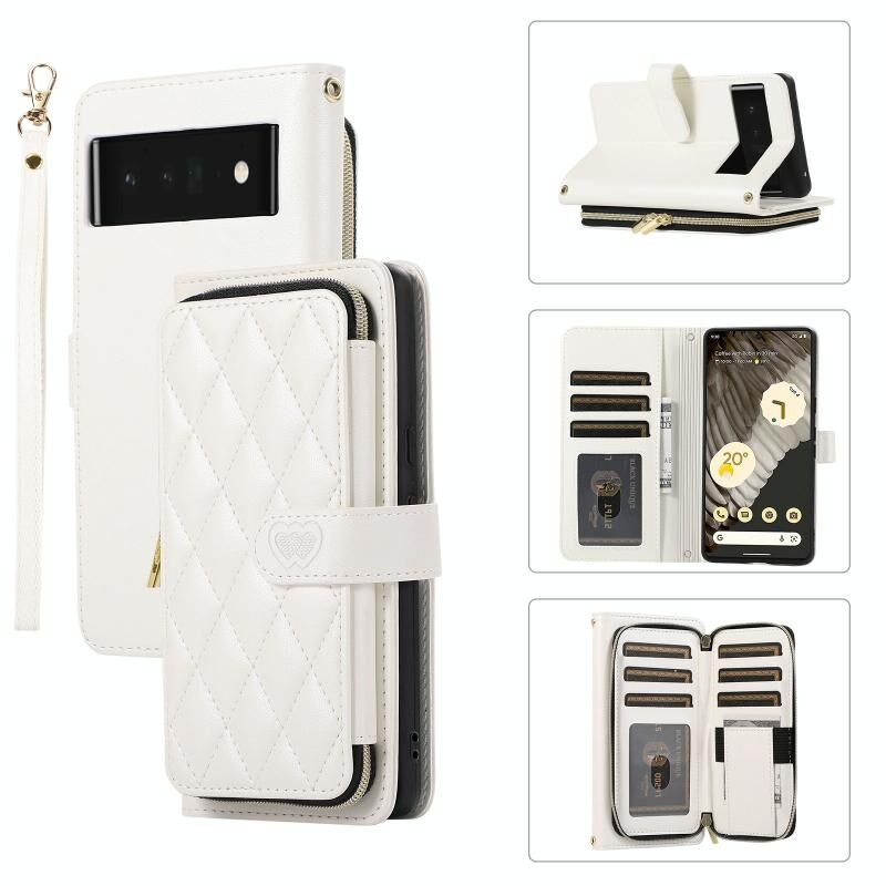 Για το Google Pixel 6 Pro Rhombic Full φερμουάρ Wallet Δερμάτινη θήκη τηλεφώνου (λευκό)