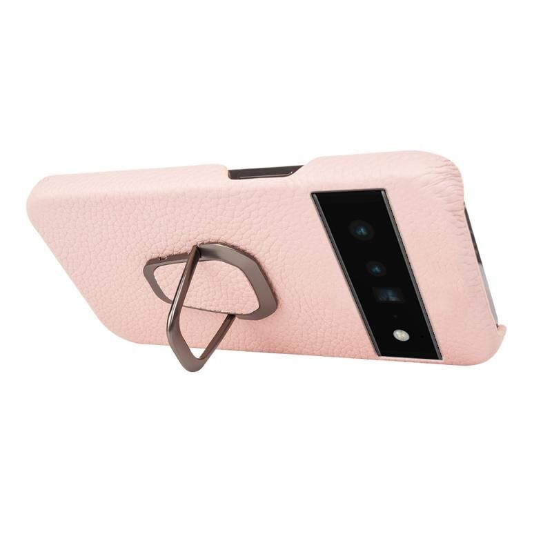 Θήκη τηλεφώνου από γνήσιο δέρμα με υφή λitchi για Google Pixel 6 Pro με δακτύλιο στήριξης (Λευκό)