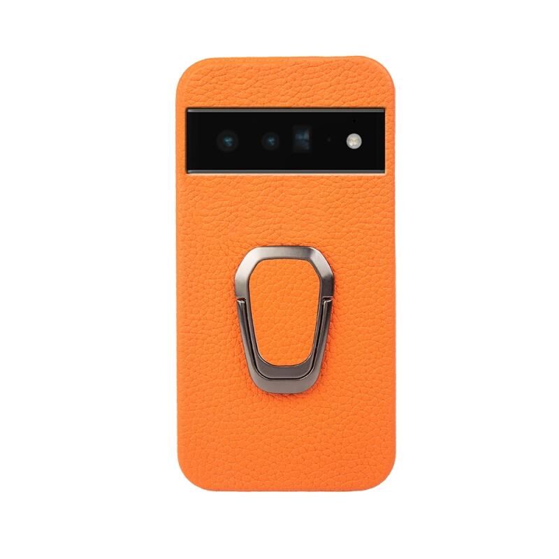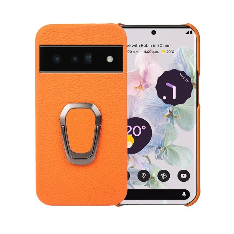 Θήκη τηλεφώνου από γνήσιο δέρμα με υφή λitchi για Google Pixel 6 Pro με δακτύλιο στήριξης (Λευκό)