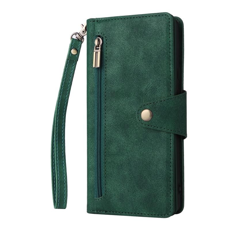 Για το Google Pixel 6 Pro Rivet πόρπη 9 κάρτες τρεις φορές δερμάτινη θήκη τηλεφώνου (πράσινο)