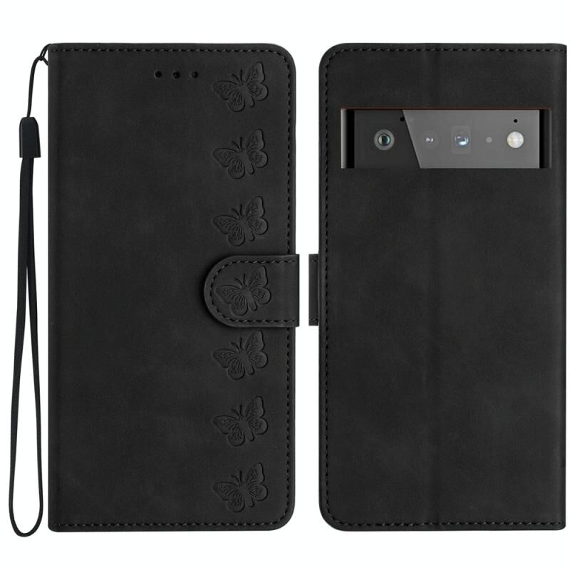Για το Google Pixel 6 Pro Επτά πεταλούδες ανάγλυφη δερμάτινη θήκη τηλεφώνου (μαύρο)