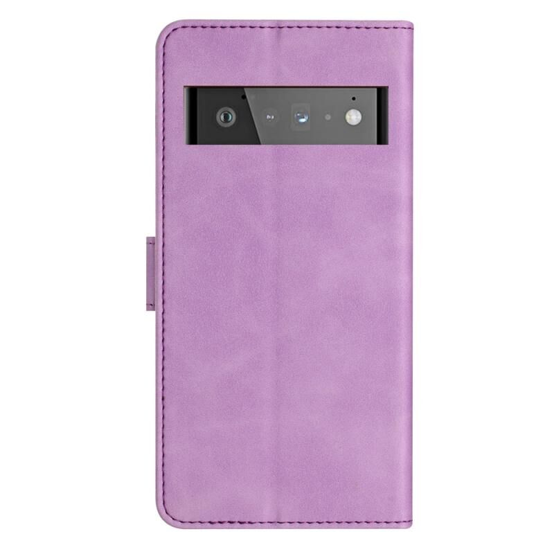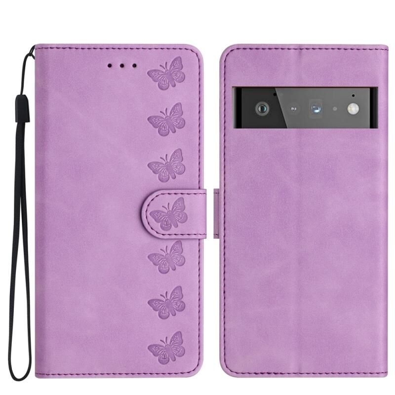 Για το Google Pixel 6 Pro Επτά πεταλούδες ανάγλυφη δερμάτινη θήκη τηλεφώνου (μωβ)