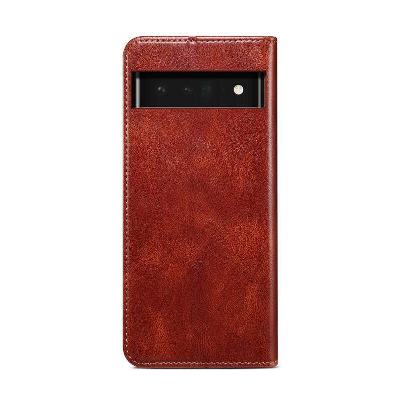 Για Google Pixel 6 Pro Απλό κερί Crazy Horse Υφή δερμάτινη θήκη τηλεφώνου με υποδοχές για κάρτες και πορτοφόλι (καφέ)
