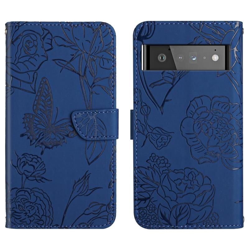 Θήκη τηλεφώνου από ανάγλυφο δέρμα για Google Pixel 6 Pro, αίσθηση δέρματος, σχέδιο πεταλούδας και παιωνίας (Κόκκινο)