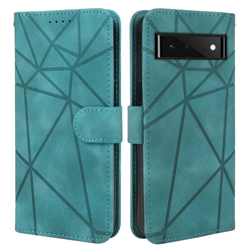 Για το Google Pixel 6 Pro Skin Feel Geometric Lines Δερμάτινη θήκη τηλεφώνου (πράσινο)