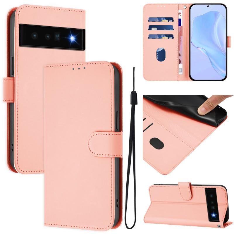 Για το Google Pixel 6 Pro Skin Feel Solid Color Δερμάτινη θήκη τηλεφώνου με κορδόνι (ροζ)