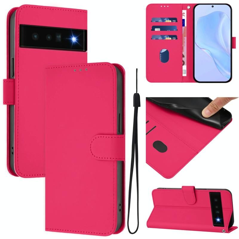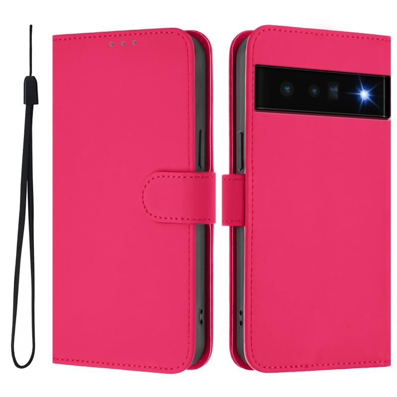 Για το Google Pixel 6 Pro Skin Feel Solid Color Δερμάτινη θήκη τηλεφώνου με κορδόνι (Rose Red)