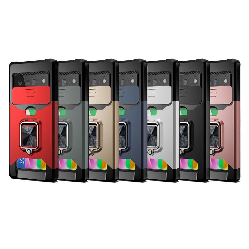 For Google Pixel 6 Pro Sliding Camera Cover Design PC + TPU Shockproof Case with Ring Holder & Card Slot(Red)