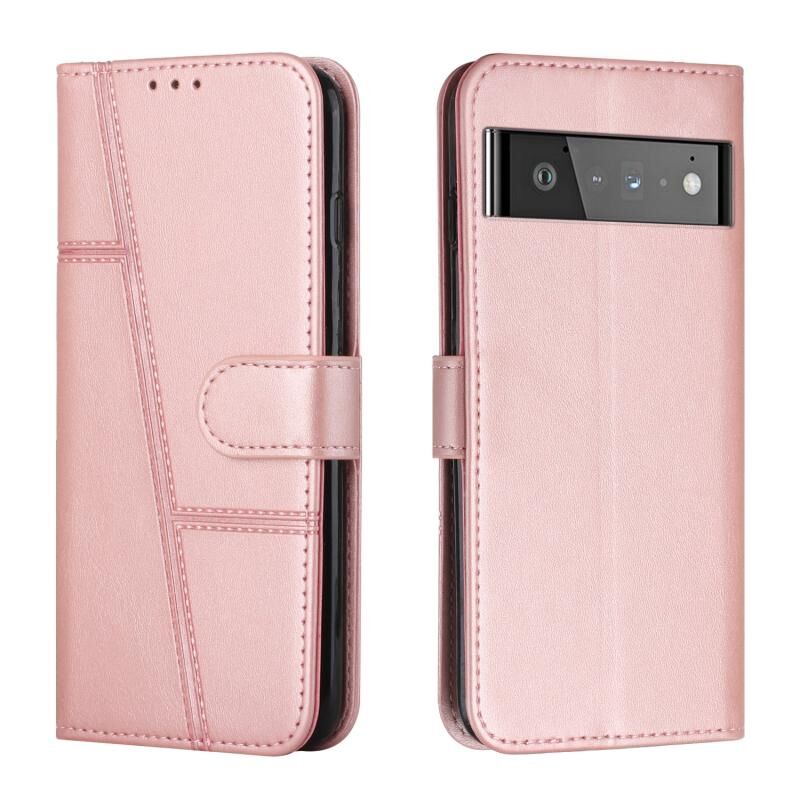 Για το Google Pixel 6 Pro Stitching Calf Texture Buckle Leather Phone Case (ροζ)