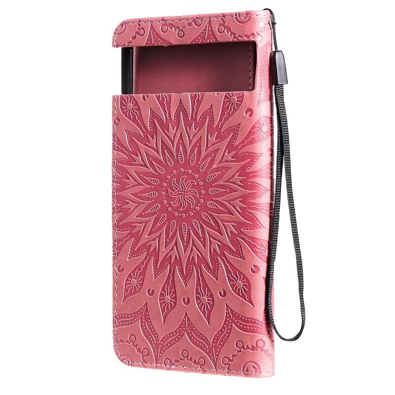 Για το Google Pixel 6 Pro Sun ανάγλυφο μοτίβο οριζόντια Flip δερμάτινη θήκη με υποδοχή κάρτας & κάτοχος & πορτοφόλι & Lanyard (ροζ)