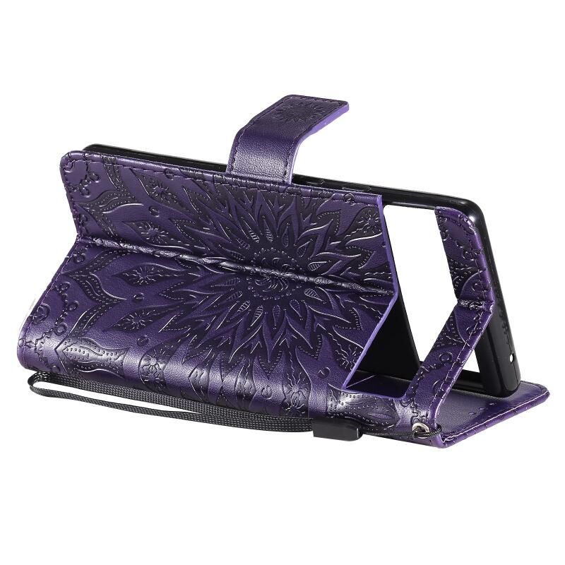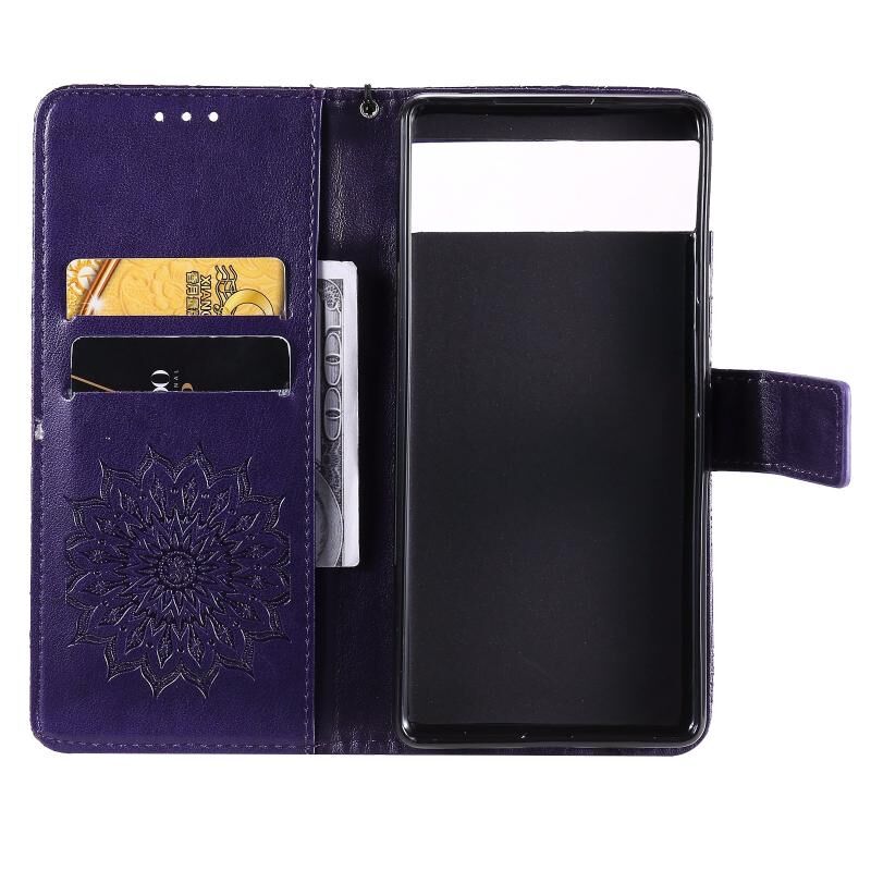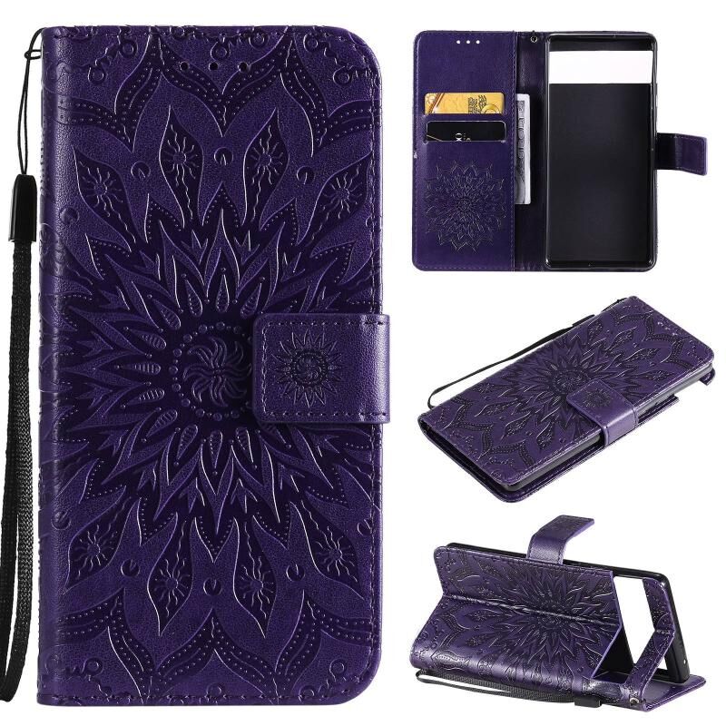 Για το Google Pixel 6 Pro Sun ανάγλυφο μοτίβο οριζόντια Flip δερμάτινη θήκη με υποδοχή κάρτας & κάτοχος & πορτοφόλι & Lanyard (μωβ)