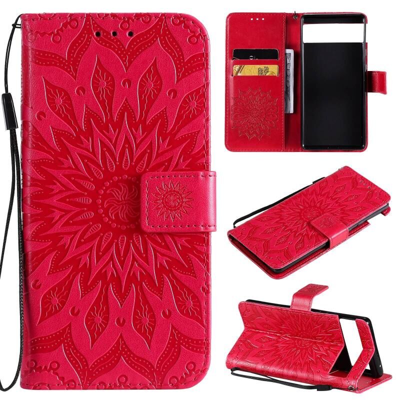 Για το Google Pixel 6 Pro Sun ανάγλυφο μοτίβο οριζόντια Flip δερμάτινη θήκη με υποδοχή κάρτας & κάτοχος & πορτοφόλι & Lanyard (κόκκινο)