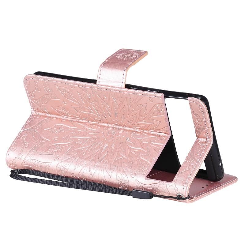 Για το Google Pixel 6 Pro Sun ανάγλυφο μοτίβο οριζόντια Flip δερμάτινη θήκη με υποδοχή κάρτας & κάτοχος & πορτοφόλι & Lanyard (Rose Gold)