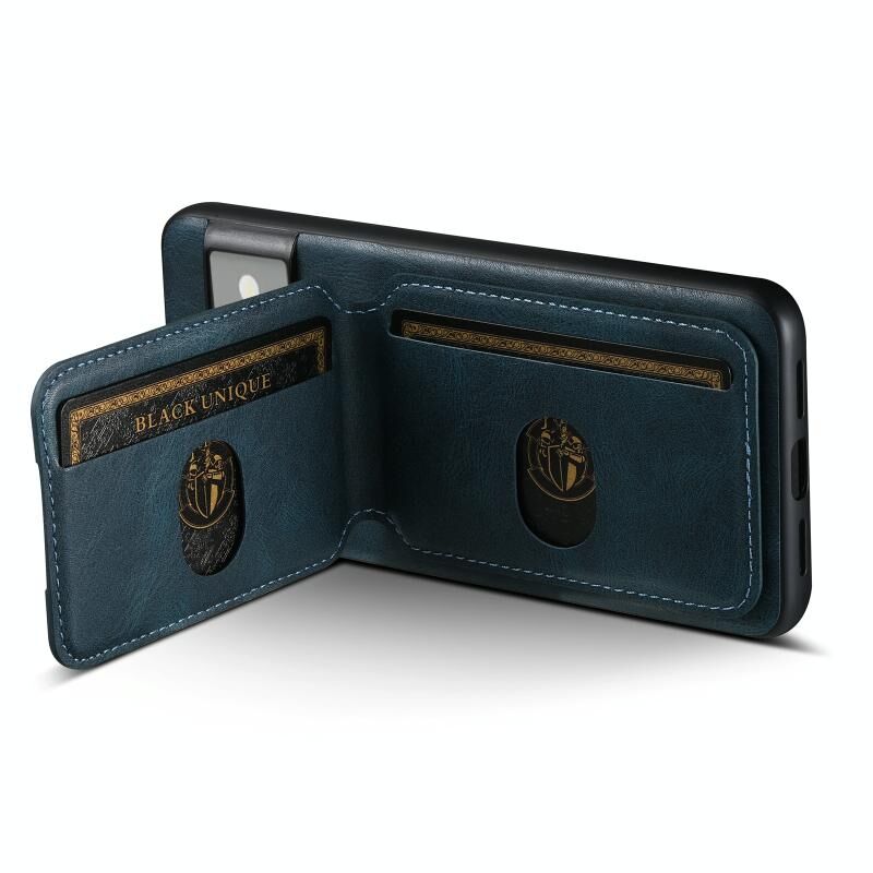 Θήκη κινητού τηλεφώνου με δερμάτινο πορτοφόλι και βάση για Google Pixel 6 Pro Suteni H02 (Μπλε) (Suteni)