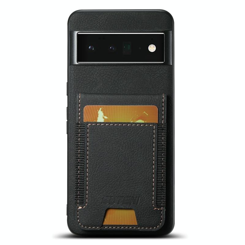 For Google Pixel 6 Pro Suteni H03 Litchi Leather Card Bag Stand Back Phone Case(Black) (Suteni)