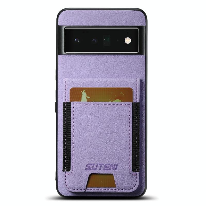For Google Pixel 6 Pro Suteni H03 Litchi Leather Card Bag Stand Back Phone Case(Purple) (Suteni)