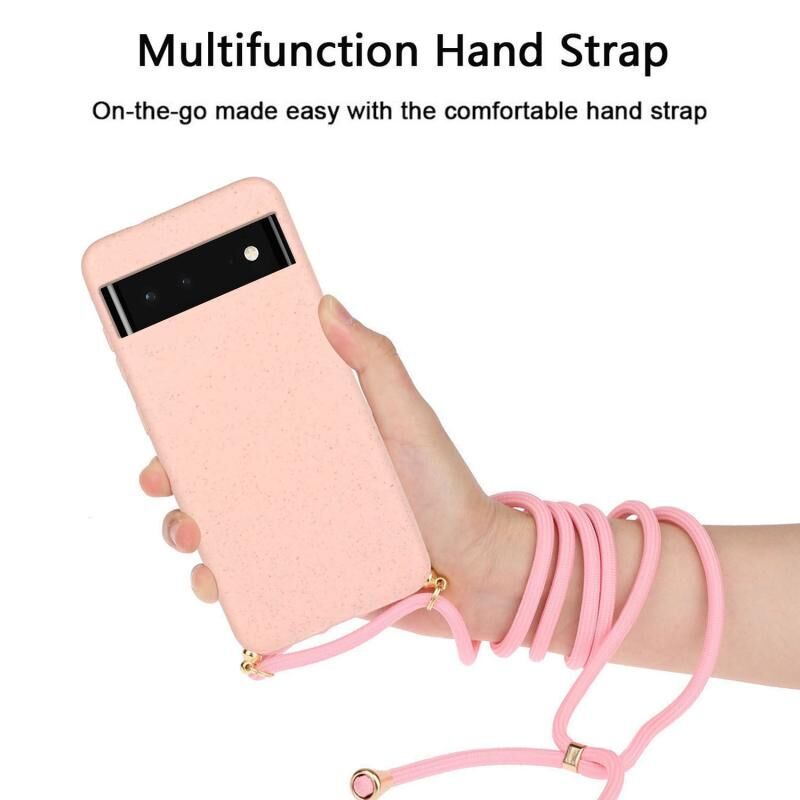 Για το Google Pixel 6 Pro Υλικό από άχυρο σιταριού + προστατευτική θήκη TPU με κορδόνι (ροζ)