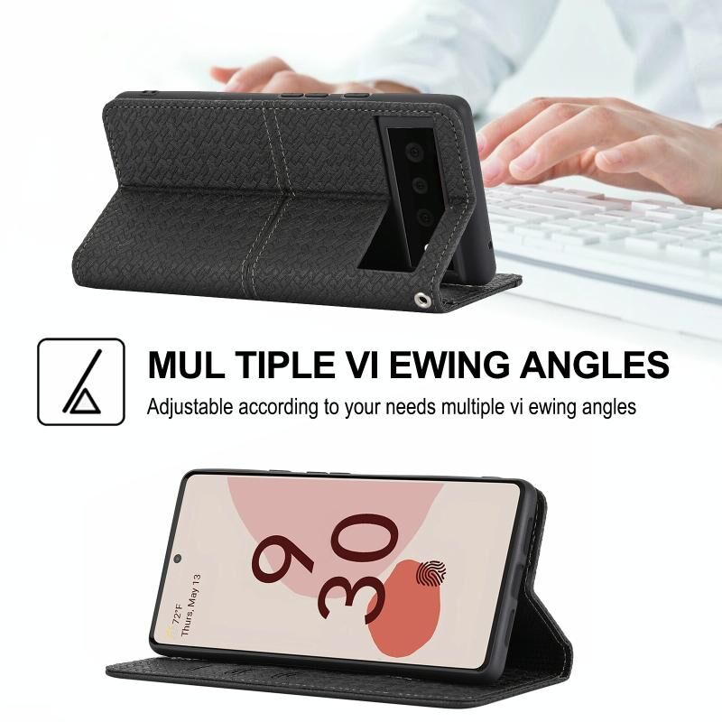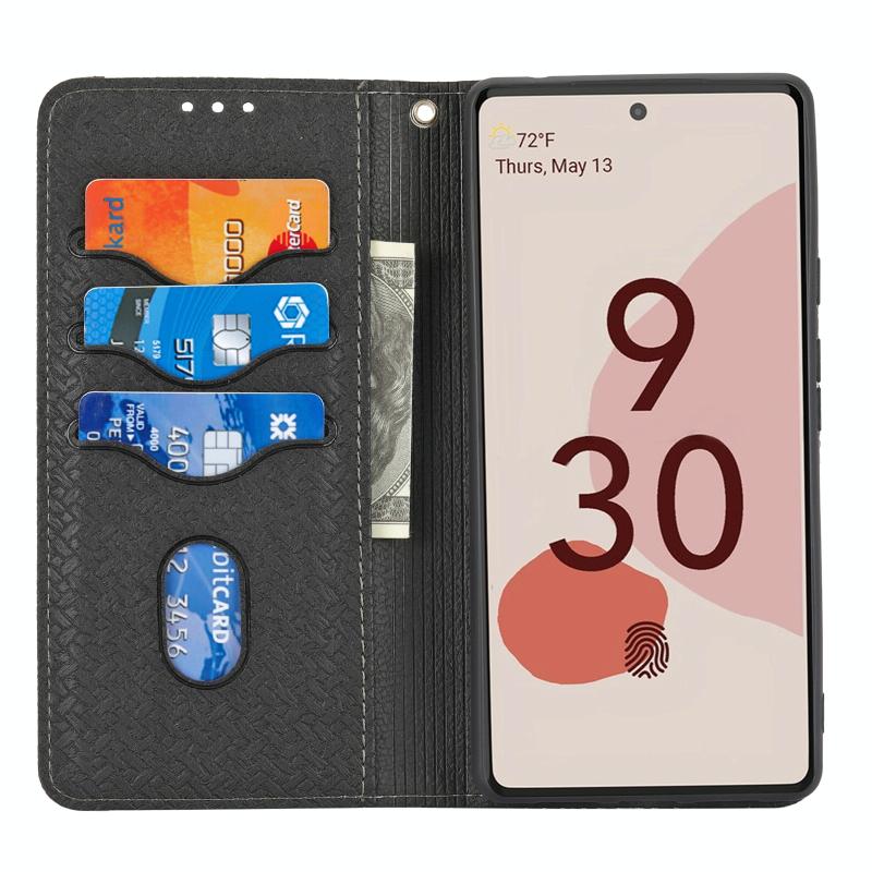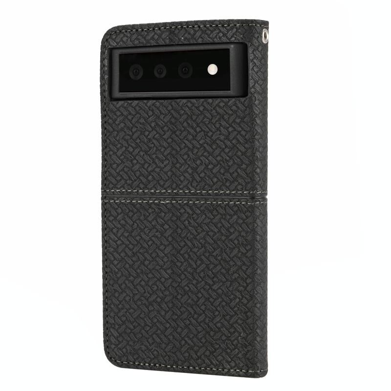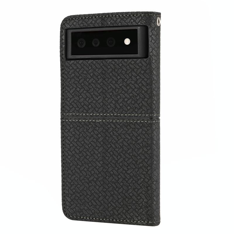 For Google Pixel 6 Pro Woven Texture Stitching Magnetic Horizontal Flip PU Leather Case with Holder & Card Slots & Wallet & Lanyard(Black)