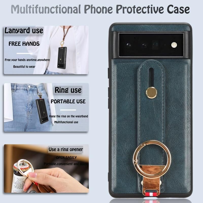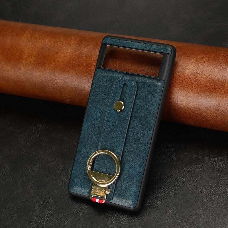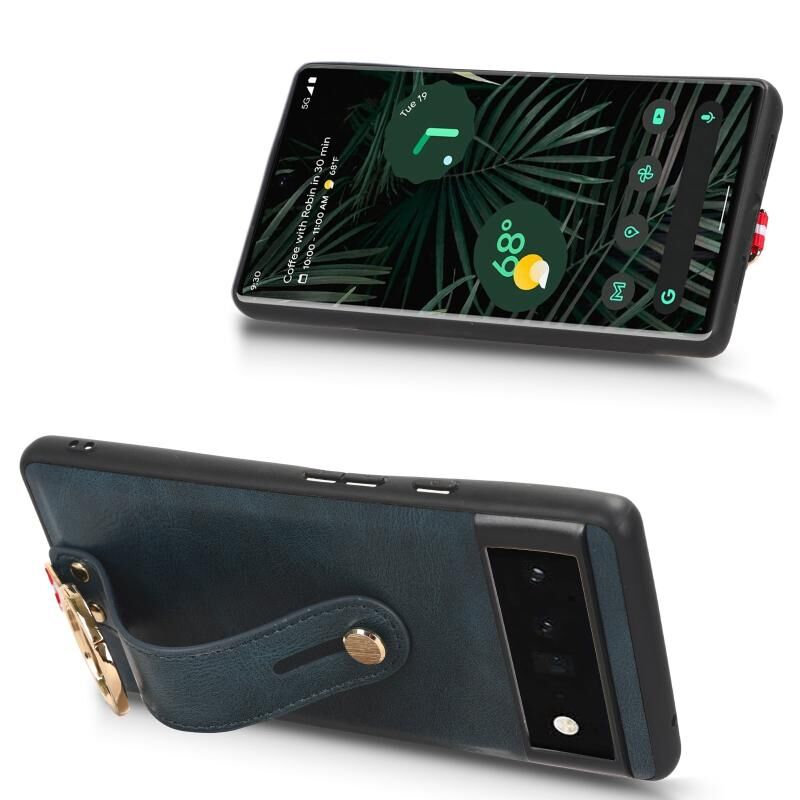 Για Google Pixel 6 Pro Wristband δέρμα πίσω θήκη τηλεφώνου (μπλε)