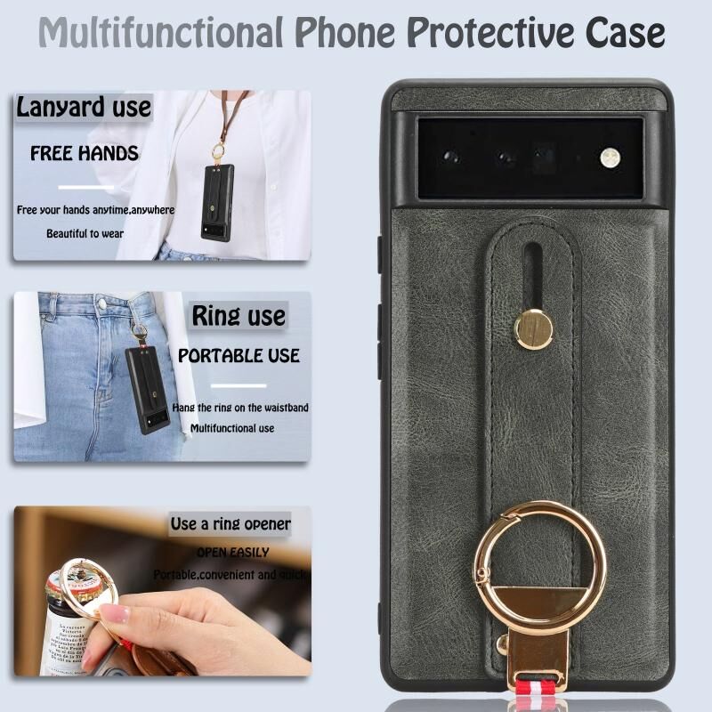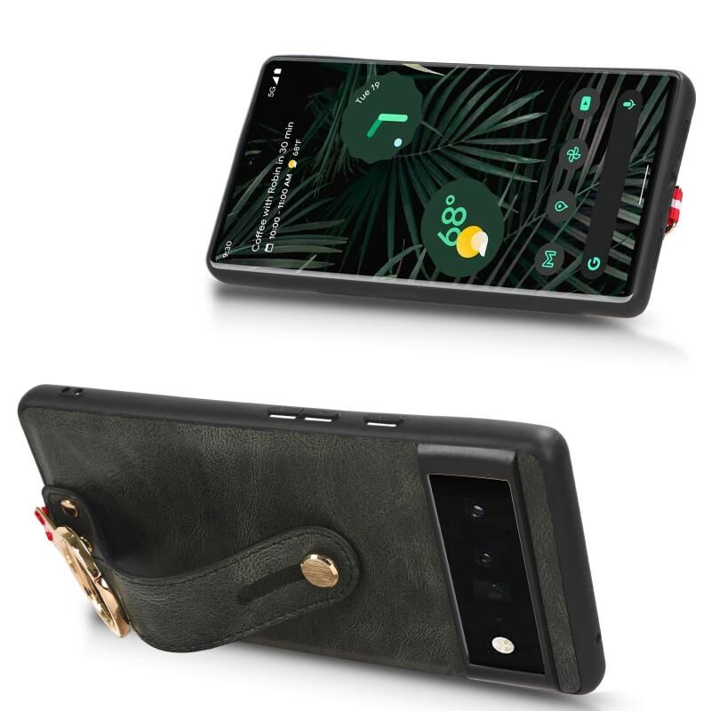 Για το Google Pixel 6 Pro Wristband δέρμα πίσω θήκη τηλεφώνου (πράσινο)