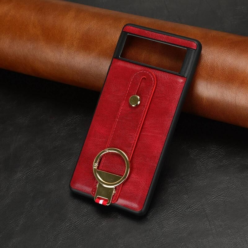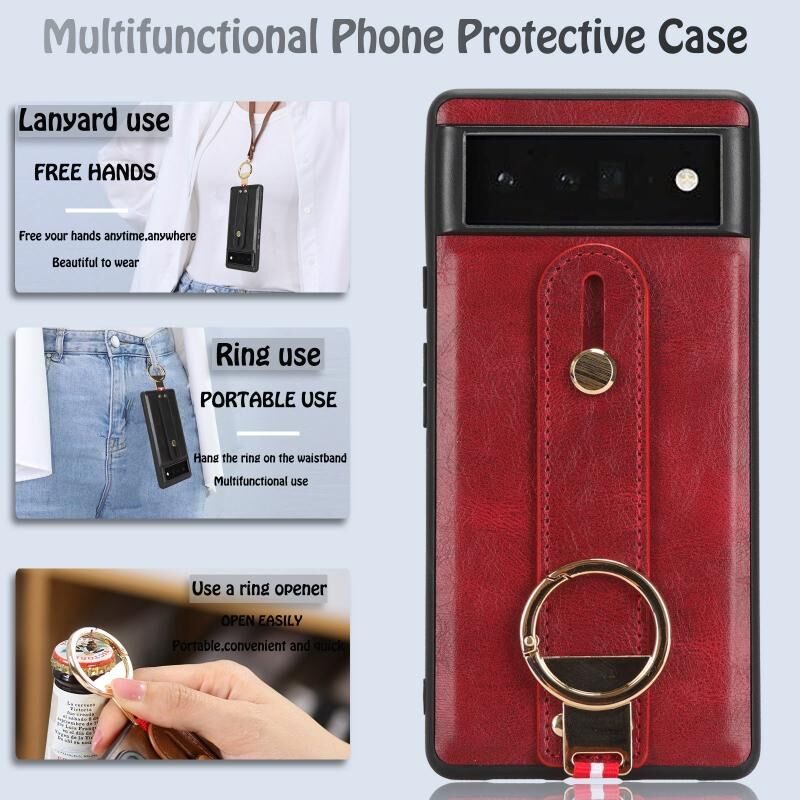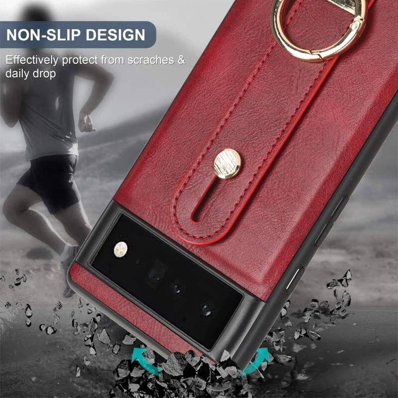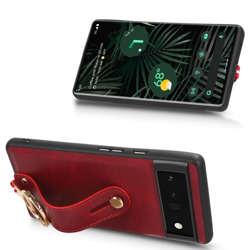 Για το Google Pixel 6 Pro Wristband δέρμα πίσω θήκη τηλεφώνου (κόκκινο)