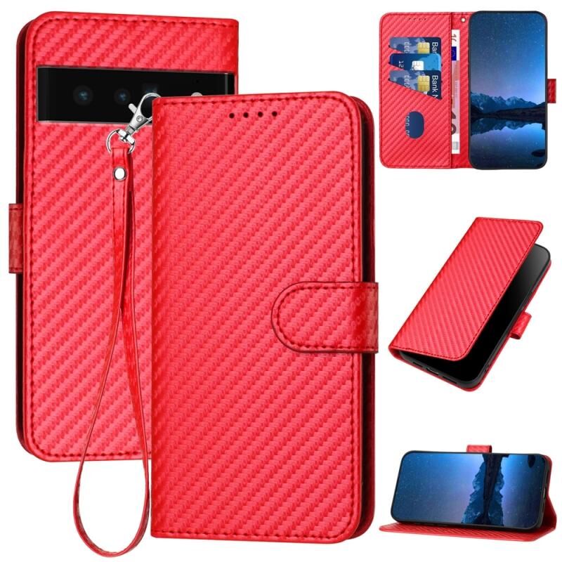 For Google Pixel 6 Pro YX0070 Carbon Fiber Buckle Leather Phone Case with Lanyard(Red)