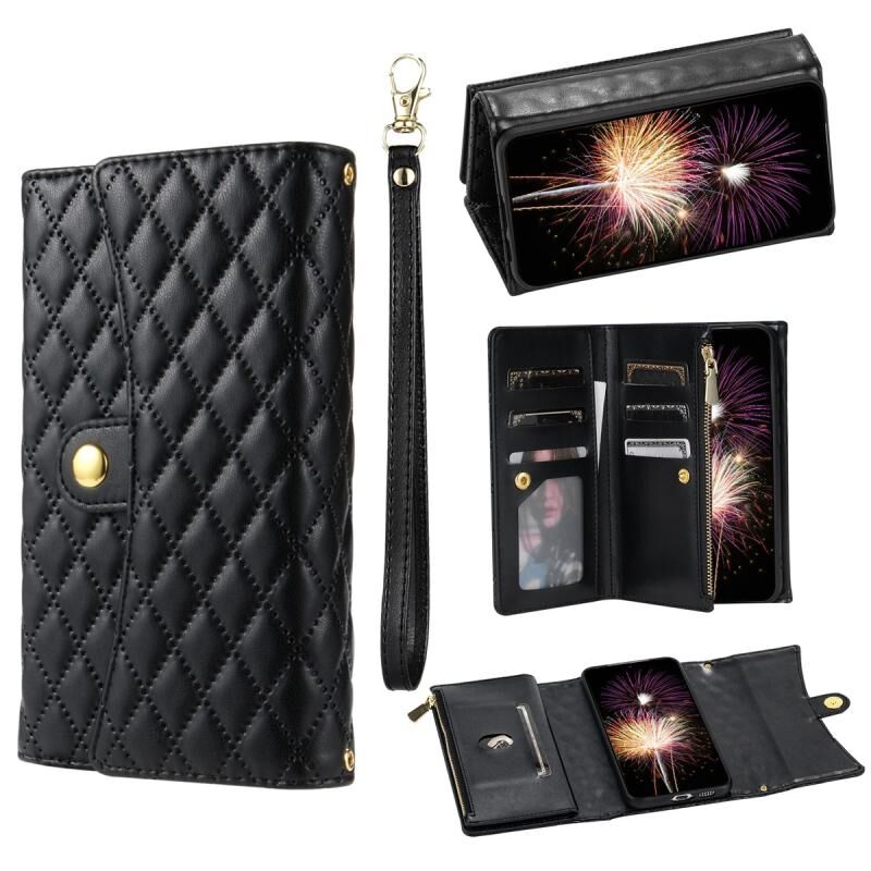 Για το Google Pixel 6 Pro φερμουάρ πορτοφόλι πολλαπλών καρτών ρομβοειδής δερμάτινη θήκη τηλεφώνου (μαύρο)