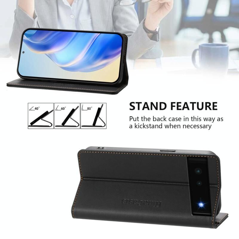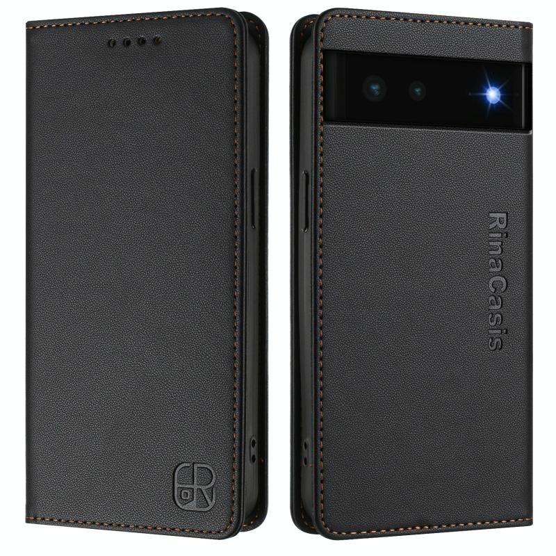 For Google Pixel 6 RC01 Dual-Folded Magnetic Suction RFID Leather Phone Case(Black)