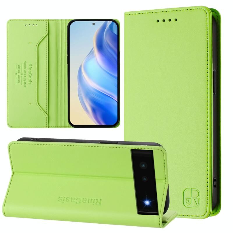For Google Pixel 6 RC01 Dual-Folded Magnetic Suction RFID Leather Phone Case(Grass Green)
