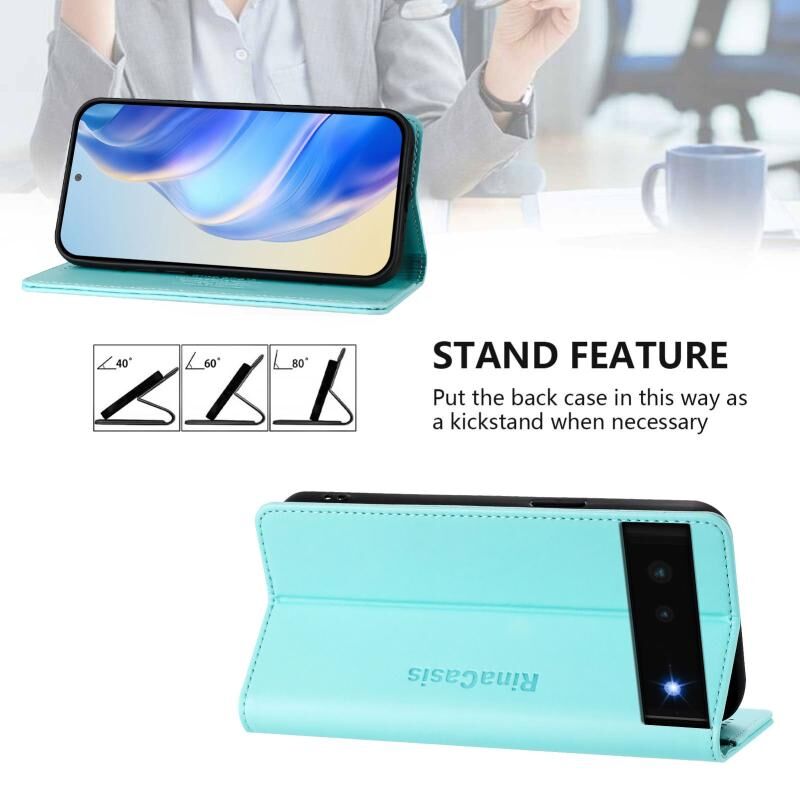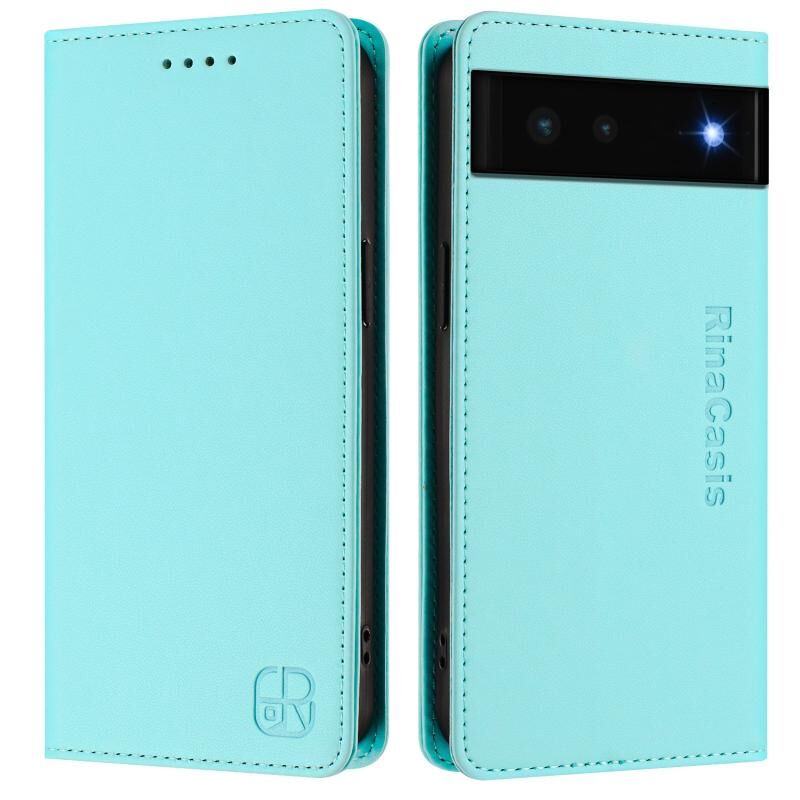 For Google Pixel 6 RC01 Dual-Folded Magnetic Suction RFID Leather Phone Case(Mint Green)