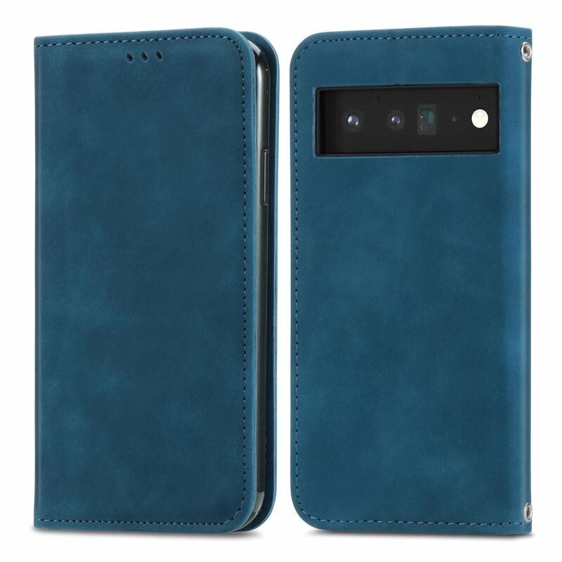 Για το Google Pixel 6 Retro Skin Feel Business Μαγνητική οριζόντια Flip δερμάτινη θήκη με υποδοχές για κάρτες & πορτοφόλι & κορνίζα φωτογραφιών (μπλε)