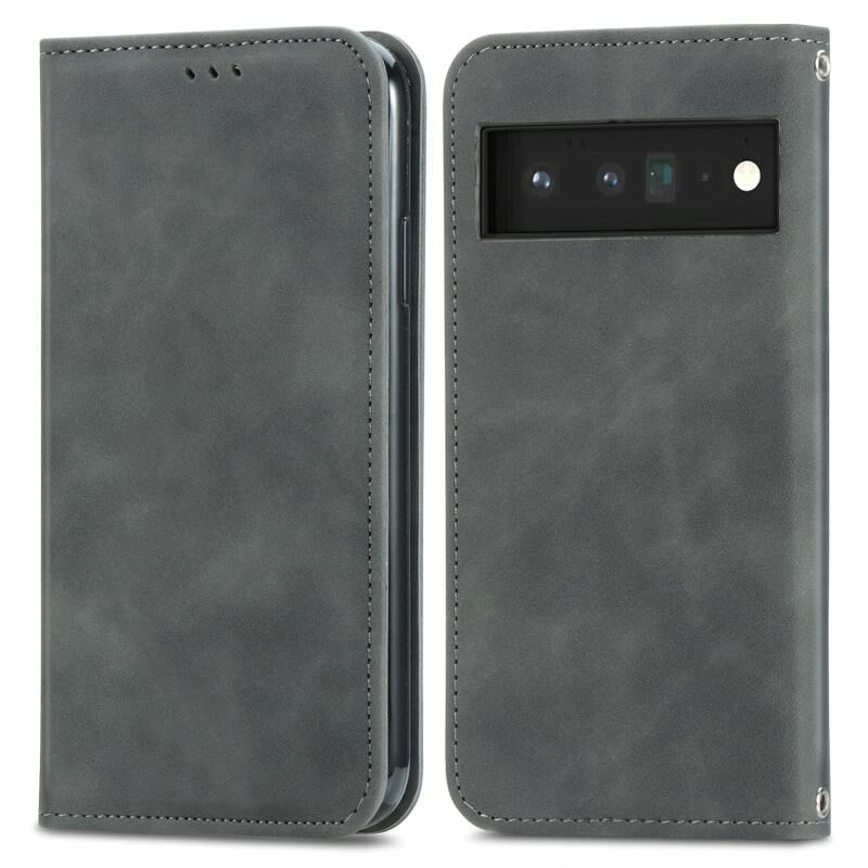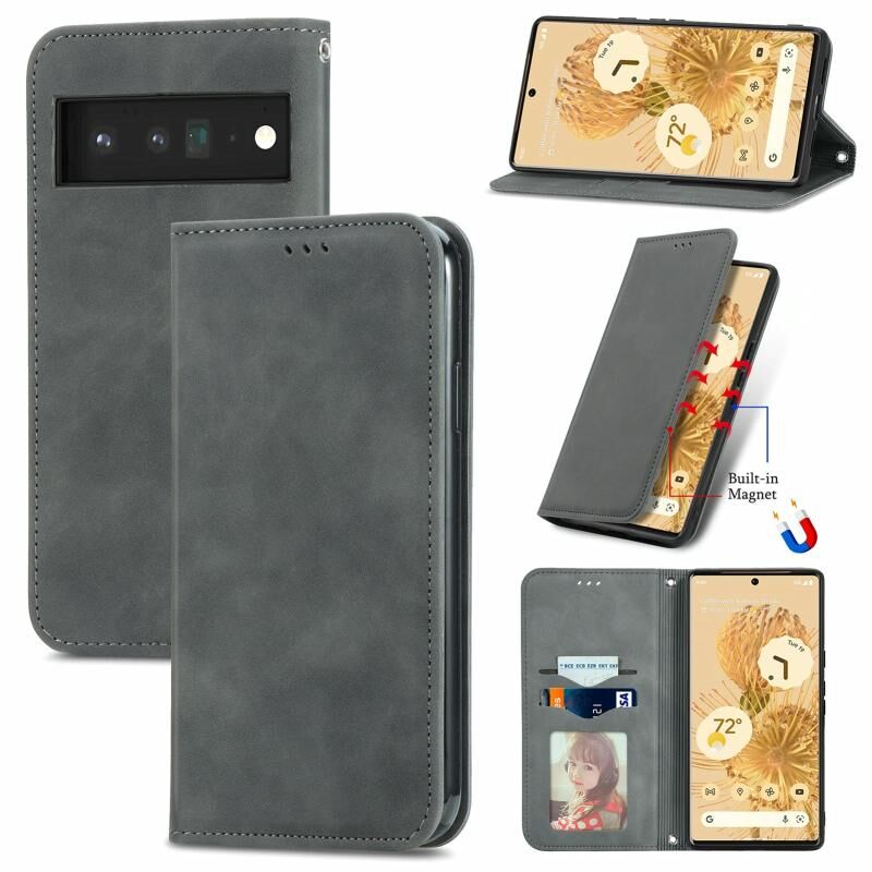Για το Google Pixel 6 Retro Skin Feel Business Μαγνητική οριζόντια Flip δερμάτινη θήκη με υποδοχές για κάρτες & πορτοφόλι & κορνίζα φωτογραφιών (γκρι)