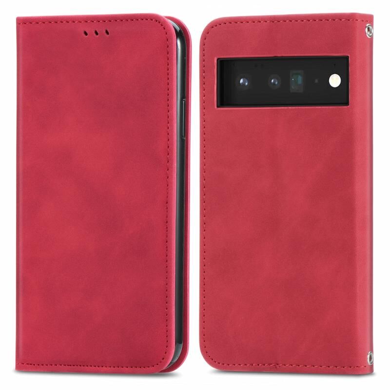 Για το Google Pixel 6 Retro Skin Feel Business Μαγνητική οριζόντια Flip δερμάτινη θήκη με υποδοχές για κάρτες & πορτοφόλι & κορνίζα φωτογραφιών (κόκκινο)