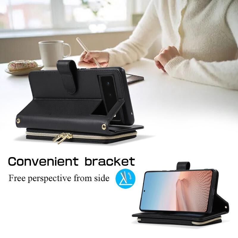 5. Λειτουργία πορτοφολιού πολλαπλών καρτών: Πολλαπλές υποδοχές καρτών και τσέπες πορτοφολιού με φερμουάρ, θήκες μετρητών μπορούν να αποθηκεύσουν τις πιστωτικές σας κάρτες και τα καθημερινά μικρά χαρτονομίσματα.