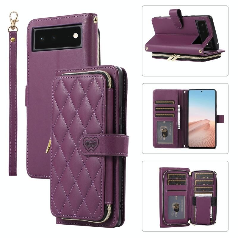 Για το Google Pixel 6 Rhombic Πλήρης φερμουάρ πορτοφόλι δερμάτινη θήκη τηλεφώνου (Deep Purple)