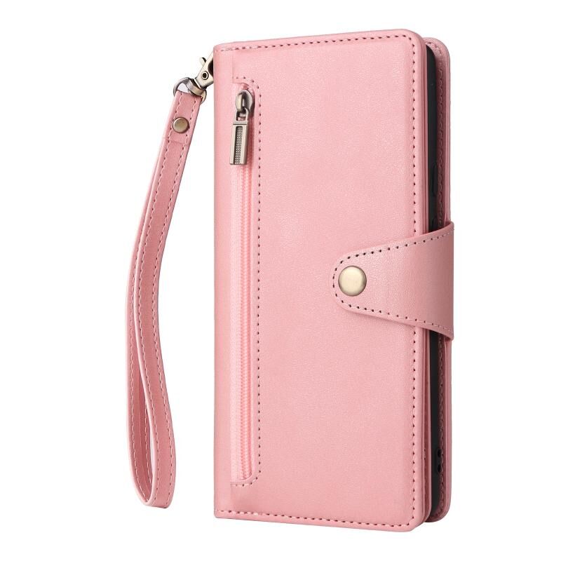 Για το Google Pixel 6 Rivet πόρπη 9 κάρτες τρεις φορές δερμάτινη θήκη τηλεφώνου (ροζ χρυσό)