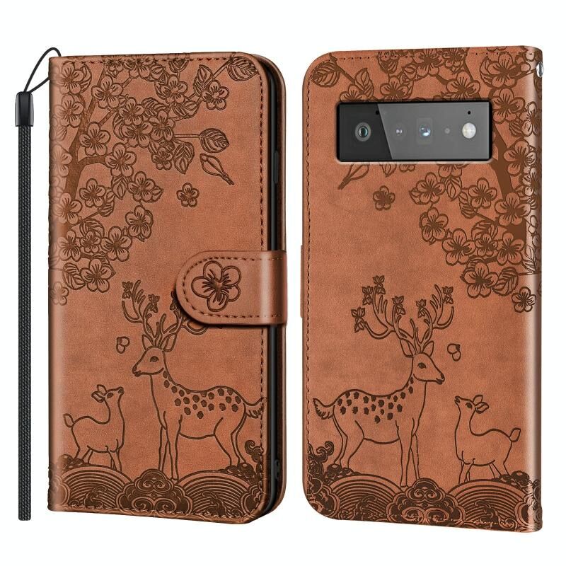 For Google Pixel 6 Sika Deer Embossing Pattern Horizontal Flip PU Leather Case with Holder & Card Slot & Wallet & Photo Frame(Brown)