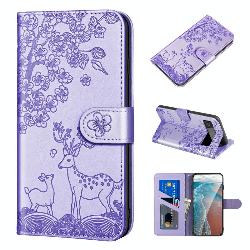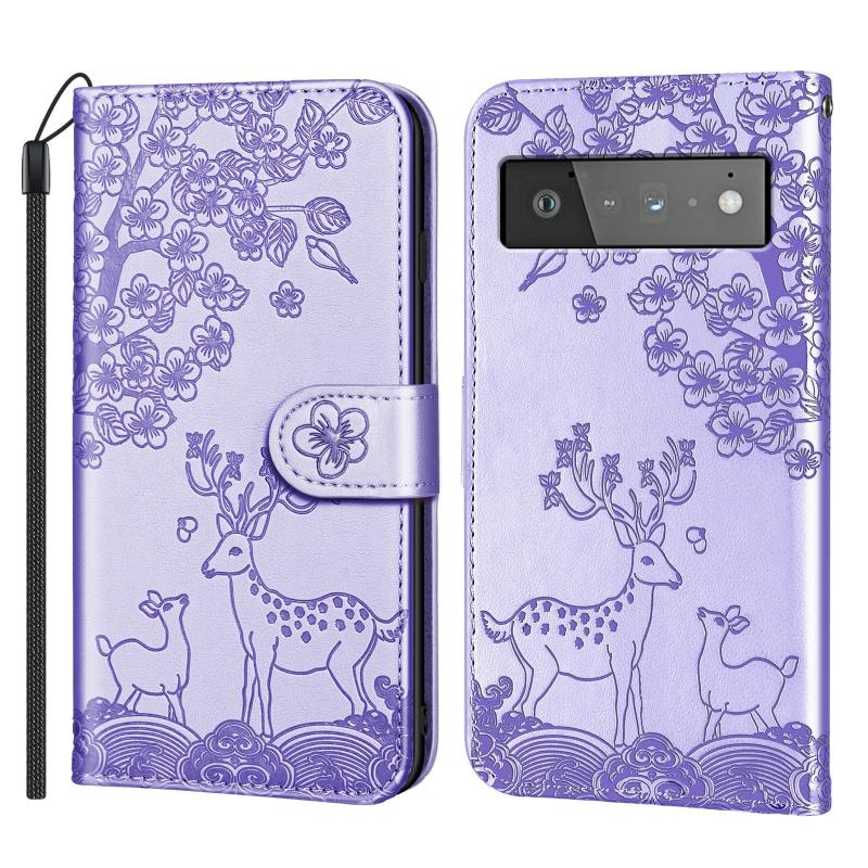 For Google Pixel 6 Sika Deer Embossing Pattern Horizontal Flip PU Leather Case with Holder & Card Slot & Wallet & Photo Frame(Purple)