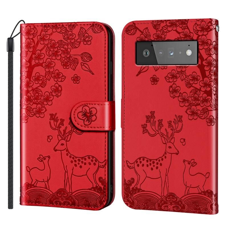 For Google Pixel 6 Sika Deer Embossing Pattern Horizontal Flip PU Leather Case with Holder & Card Slot & Wallet & Photo Frame(Red)