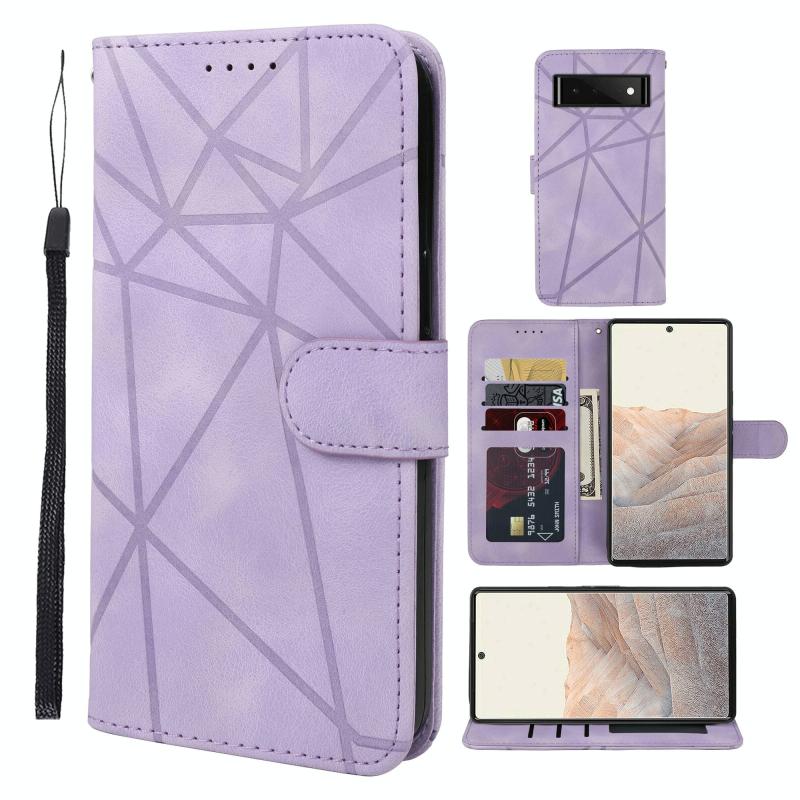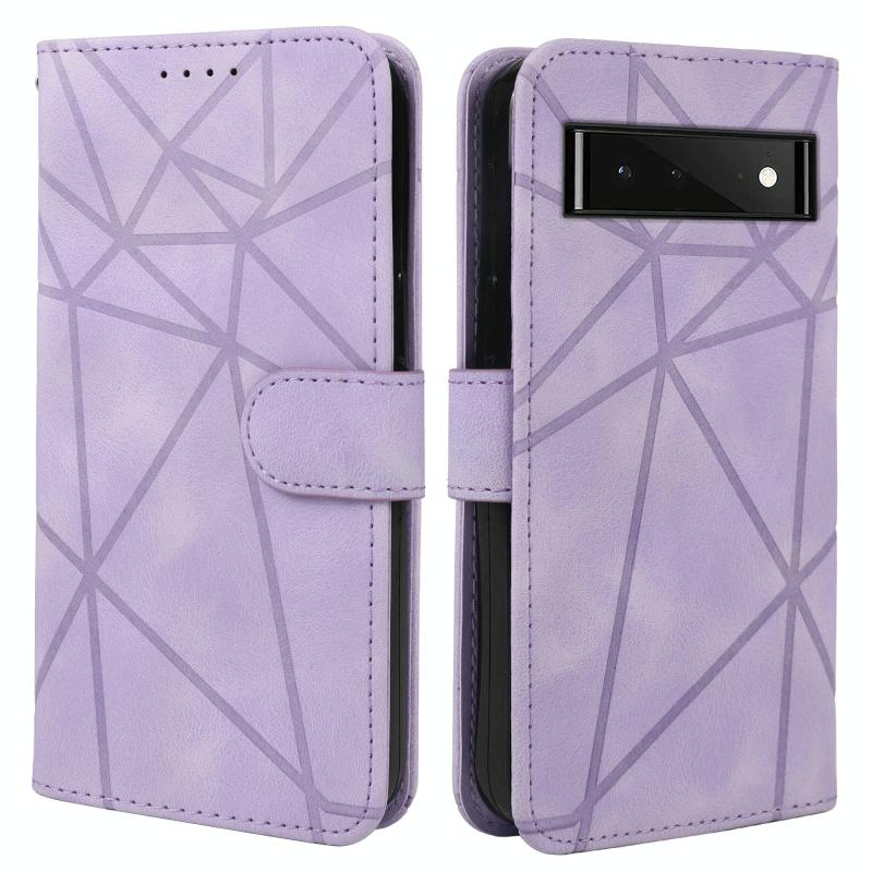 For Google Pixel 6 Skin Feel Geometric Lines Leather Phone Case(Purple)
