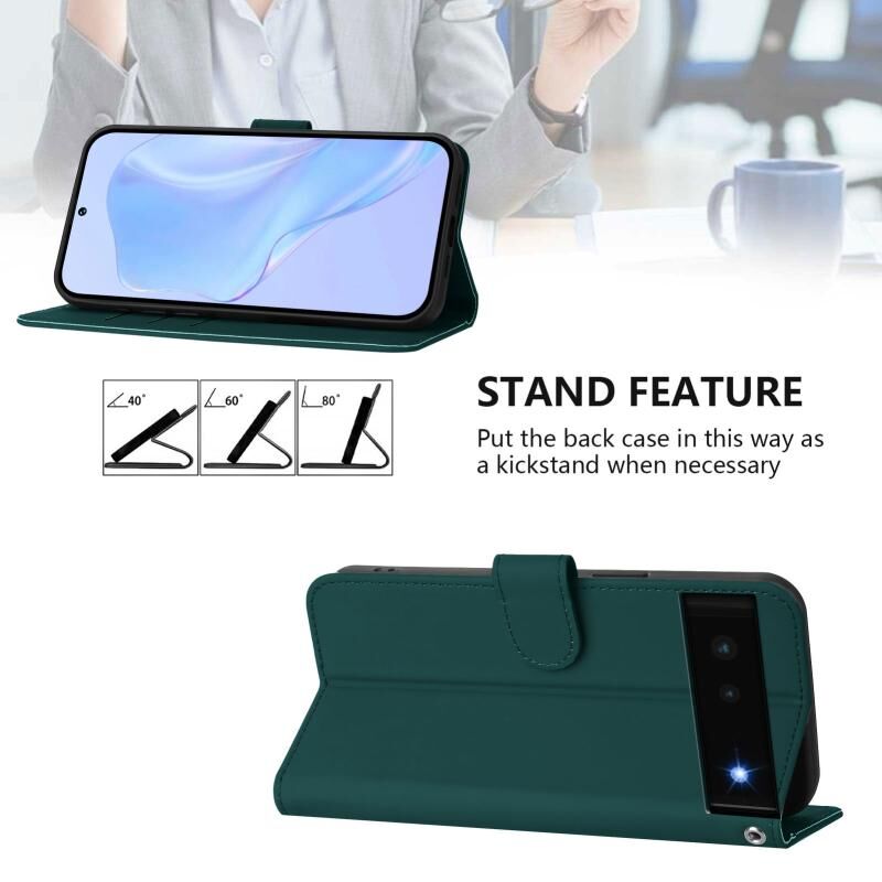 Για το Google Pixel 6 Skin Feel Solid Color Δερμάτινη θήκη τηλεφώνου με κορδόνι (σκούρο πράσινο)
