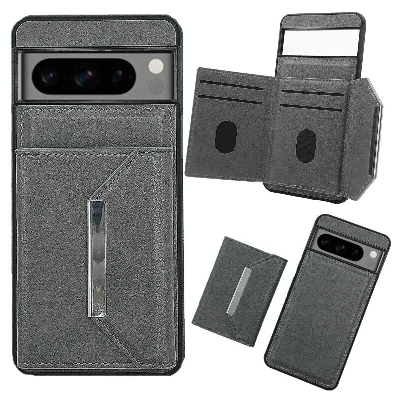 Για το Google Pixel 6 Αμιγές χρώμα μεταλλική πόρπη κάρτα υποδοχές τσάντα υπόθεση τηλεφώνου (γκρι)