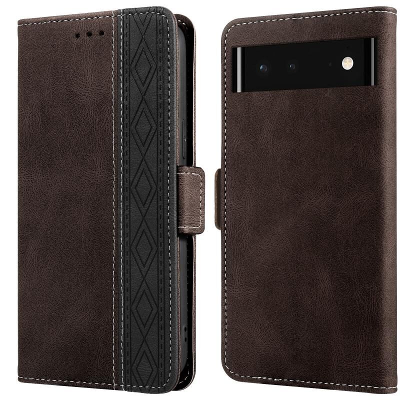 Για το Google Pixel 6 Stitching Side-Magnetic RFID δερμάτινη θήκη τηλεφώνου (Καφές)