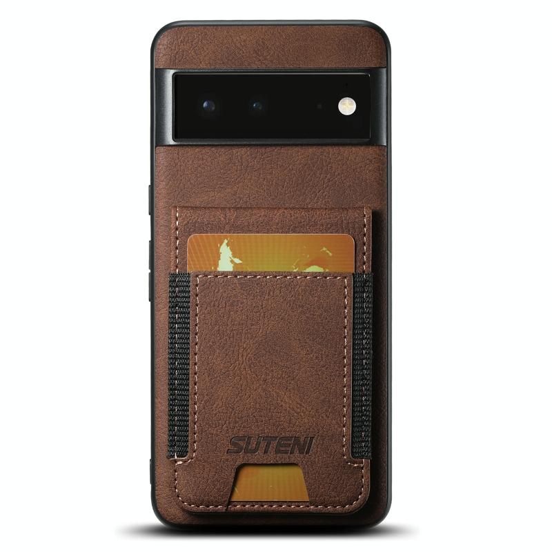 For Google Pixel 6 Suteni H03 Litchi Leather Card Bag Stand Back Phone Case(Brown) (Suteni)