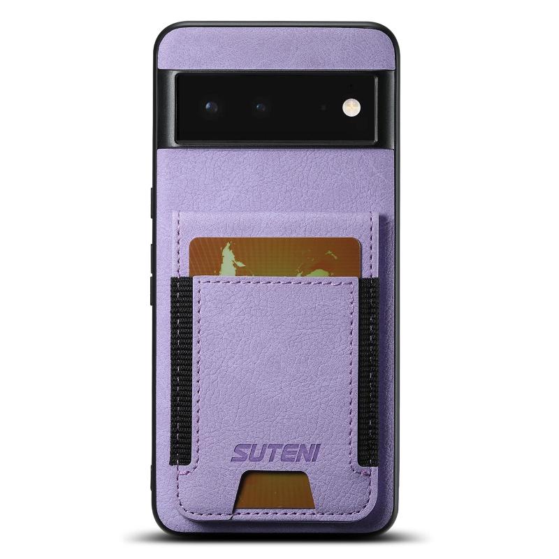For Google Pixel 6 Suteni H03 Litchi Leather Card Bag Stand Back Phone Case(Purple) (Suteni)
