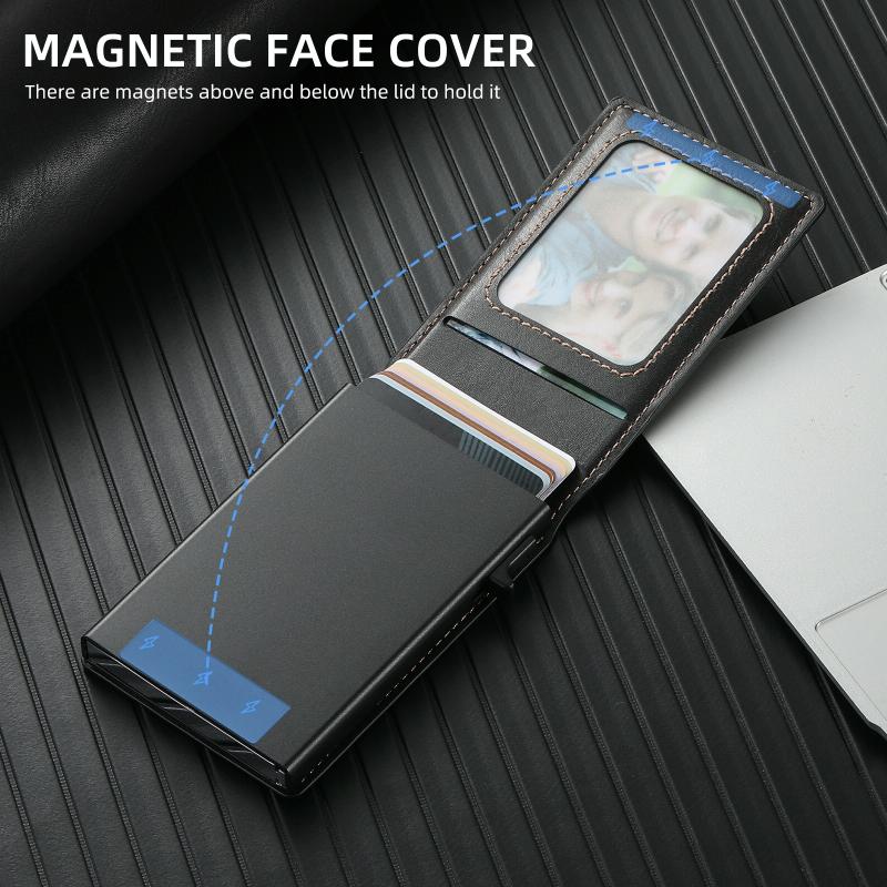 1. Material: PU leather +TPU+PC+ magnet + metal card box