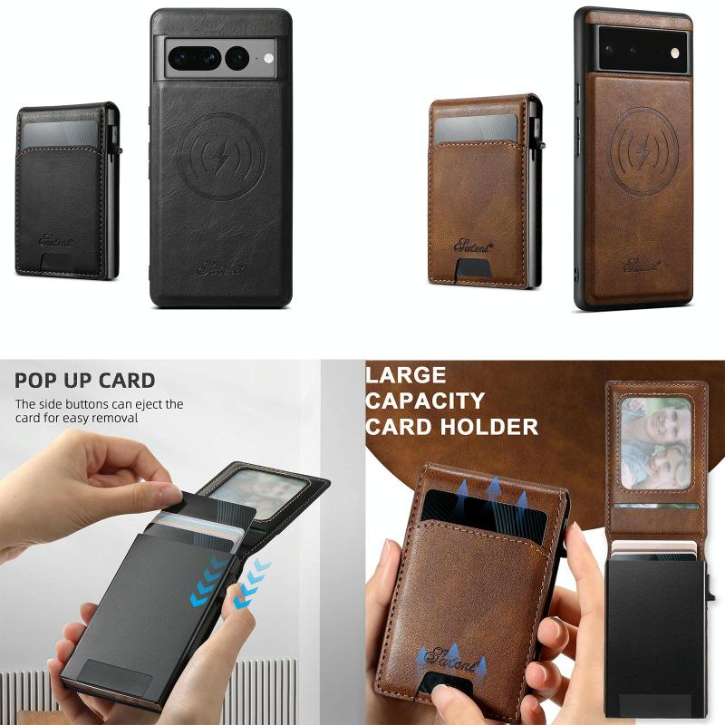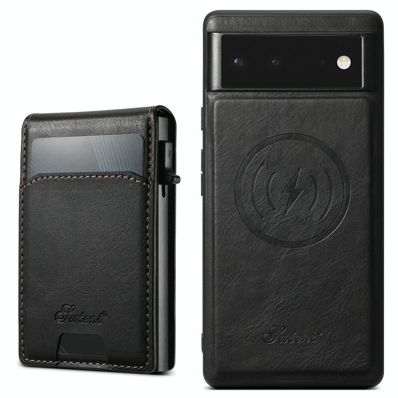 For Google Pixel 6 Suteni H19 Oil Wax 2-in-1 MagSafe Removable Card Box Back Phone Case(Black) (Suteni)