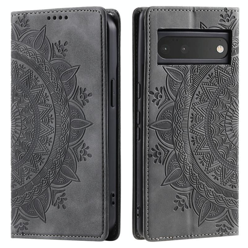 Για Google Pixel 6 Totem ανάγλυφη μαγνητική δερμάτινη θήκη τηλεφώνου (γκρι)