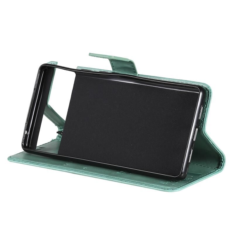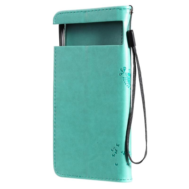 Για Google Pixel 6 Tree & Cat ανάγλυφο μοτίβο οριζόντια Flip δερμάτινη θήκη με θήκη & υποδοχές για κάρτες & πορτοφόλι & κορδόνι (πράσινο)